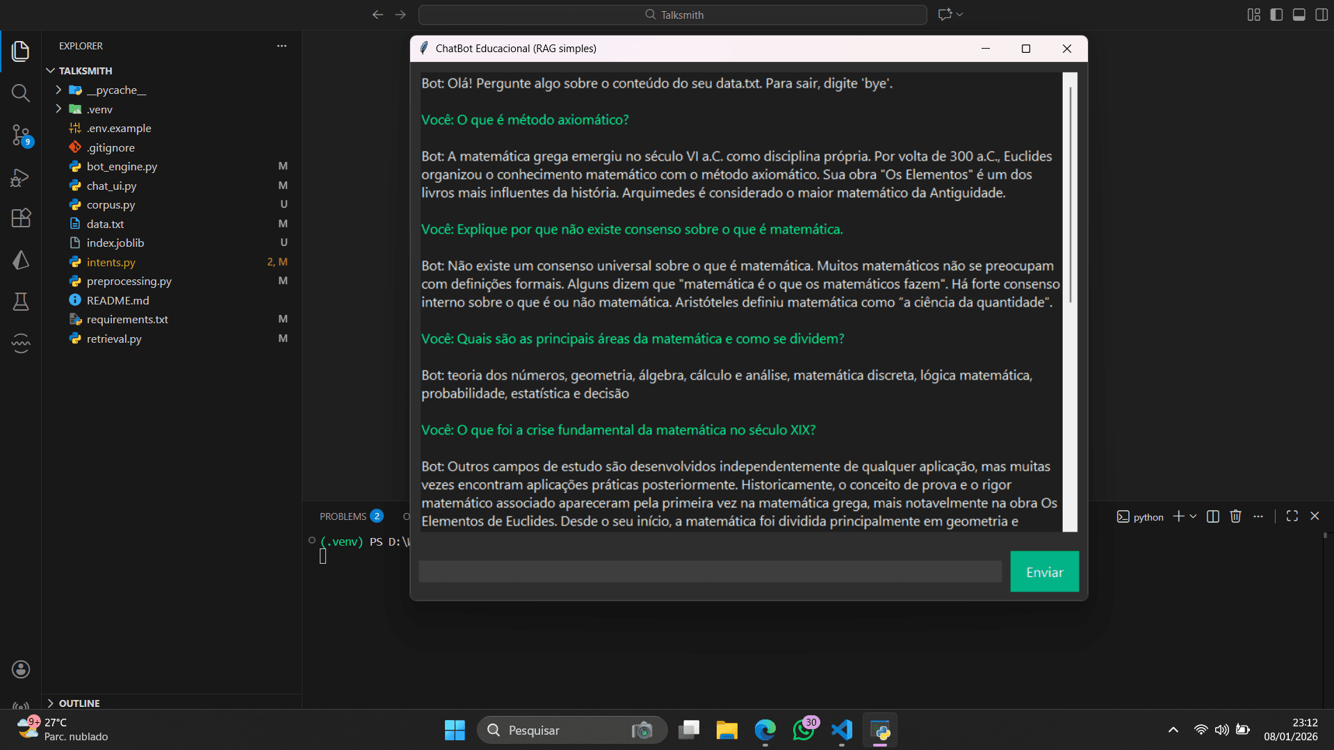 Chatbot em PT-BR com TF-IDF + BM25 • NLP com spaCy/NLTK • Interface desktop (Tkinter) sobre corpus local